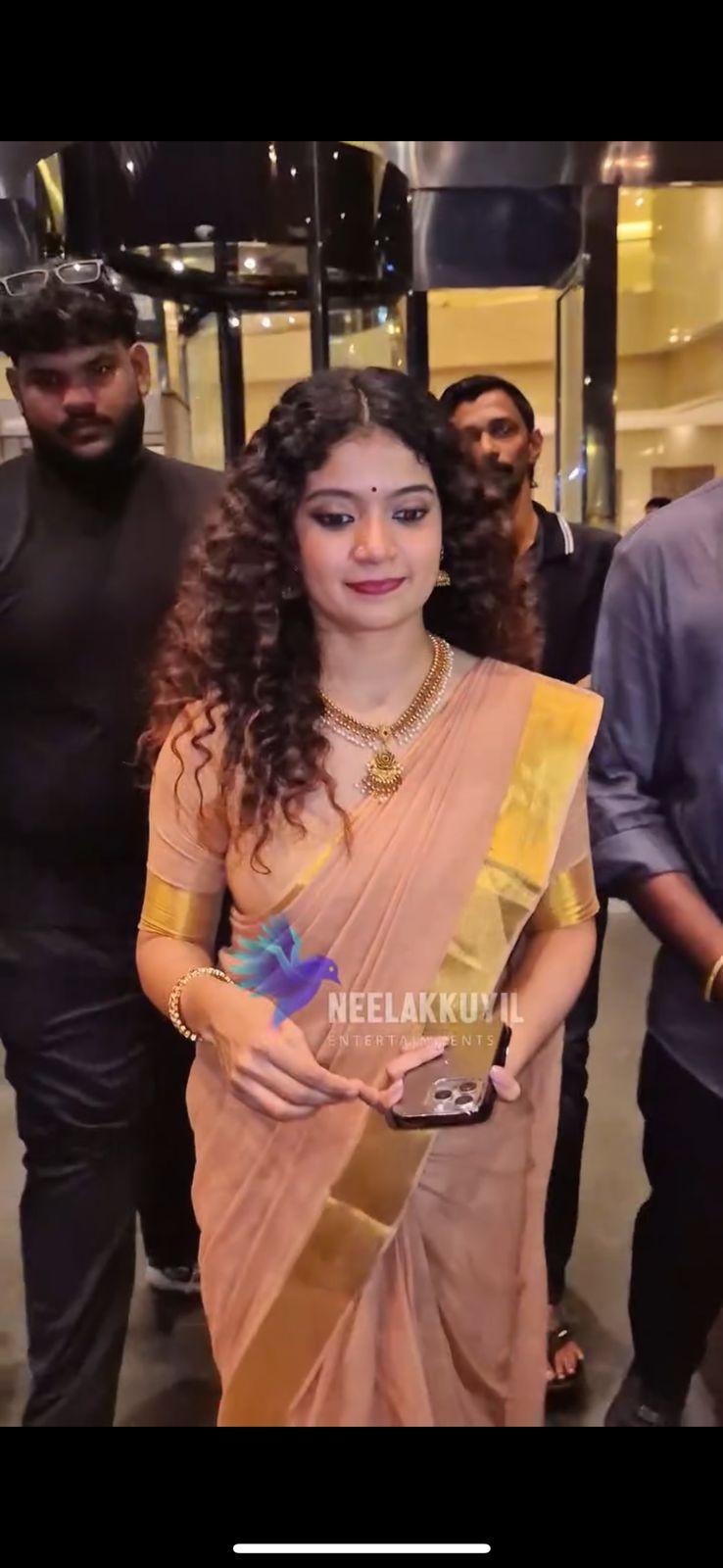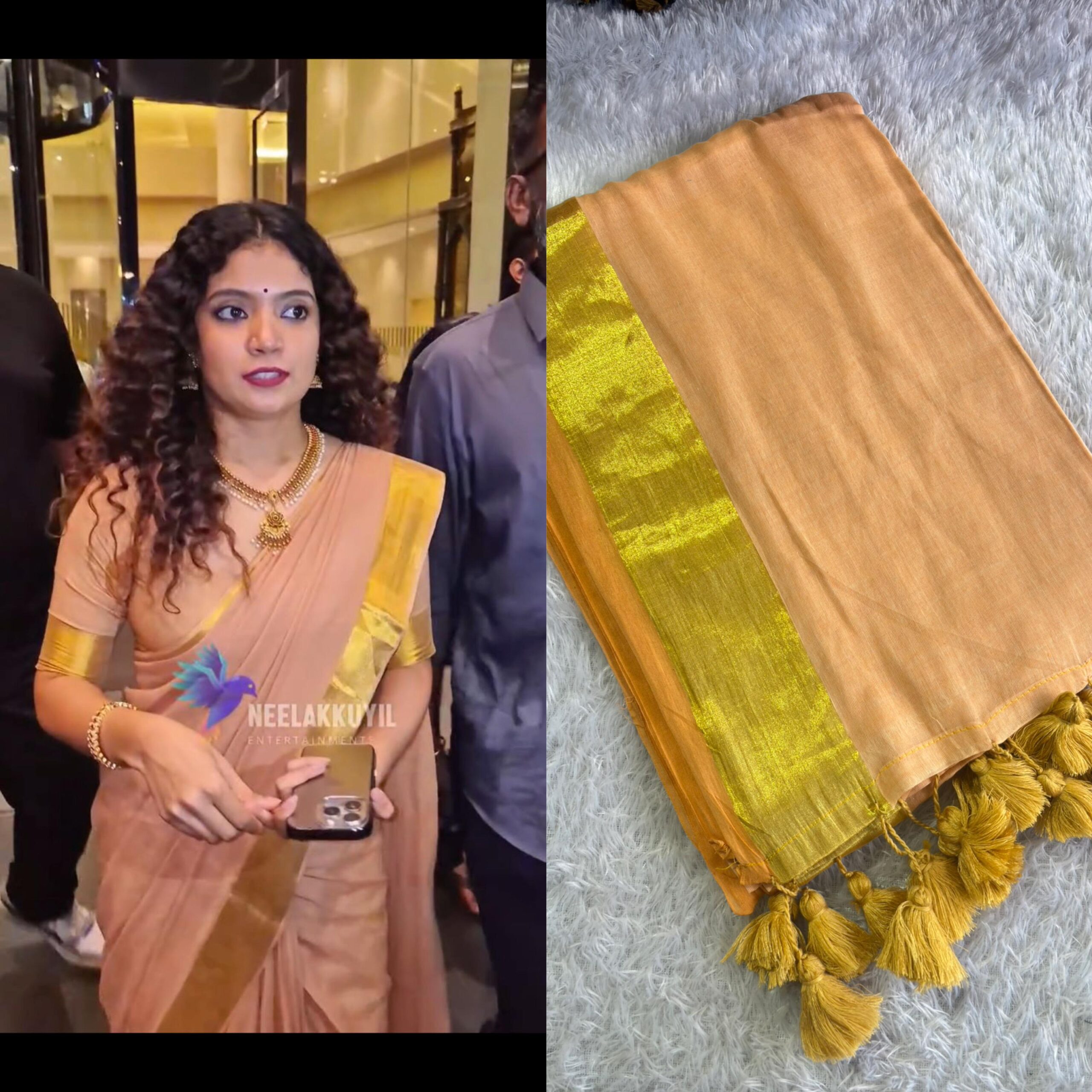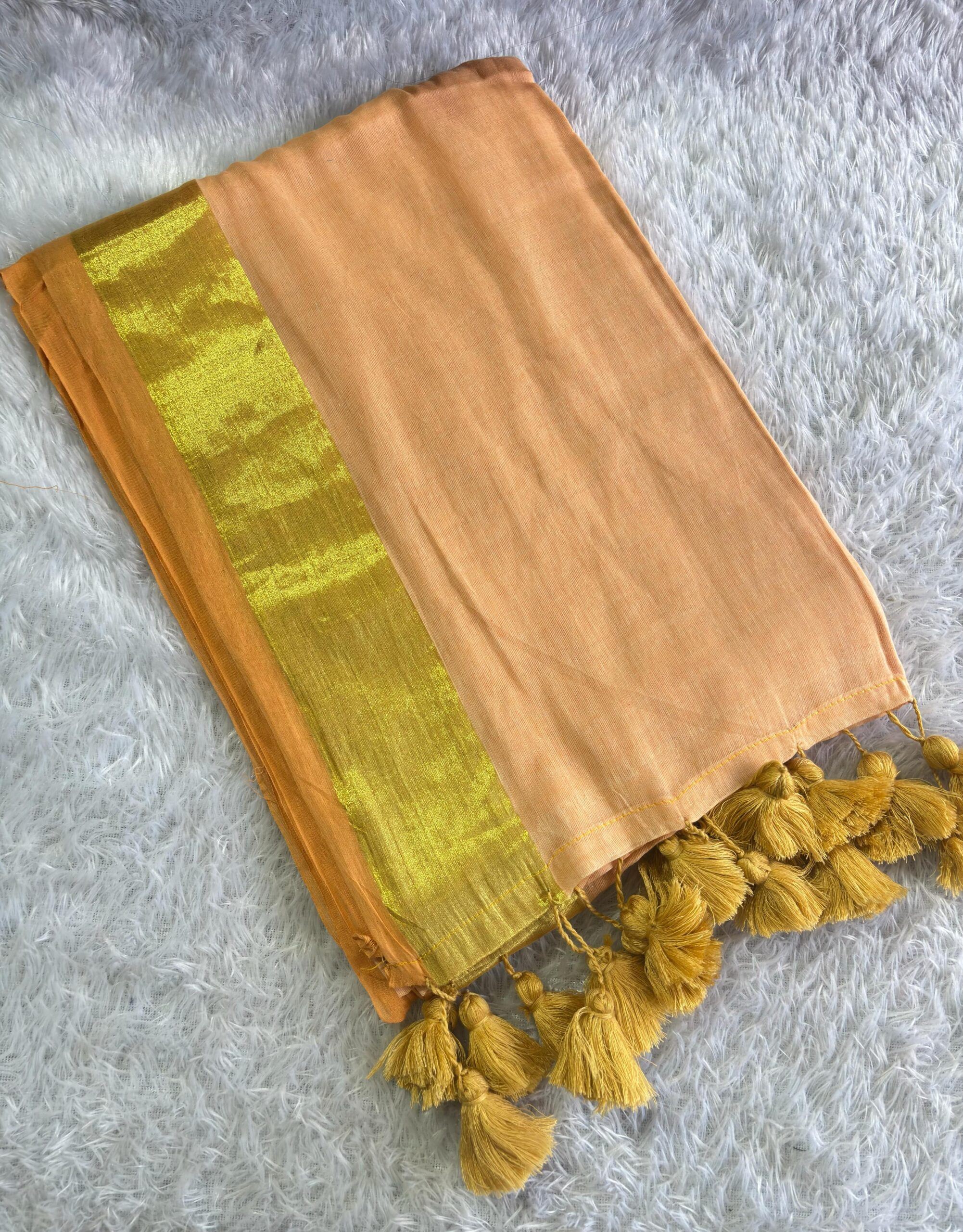 Anna Ben inspired Peach and Gold border Mul cotton saree
