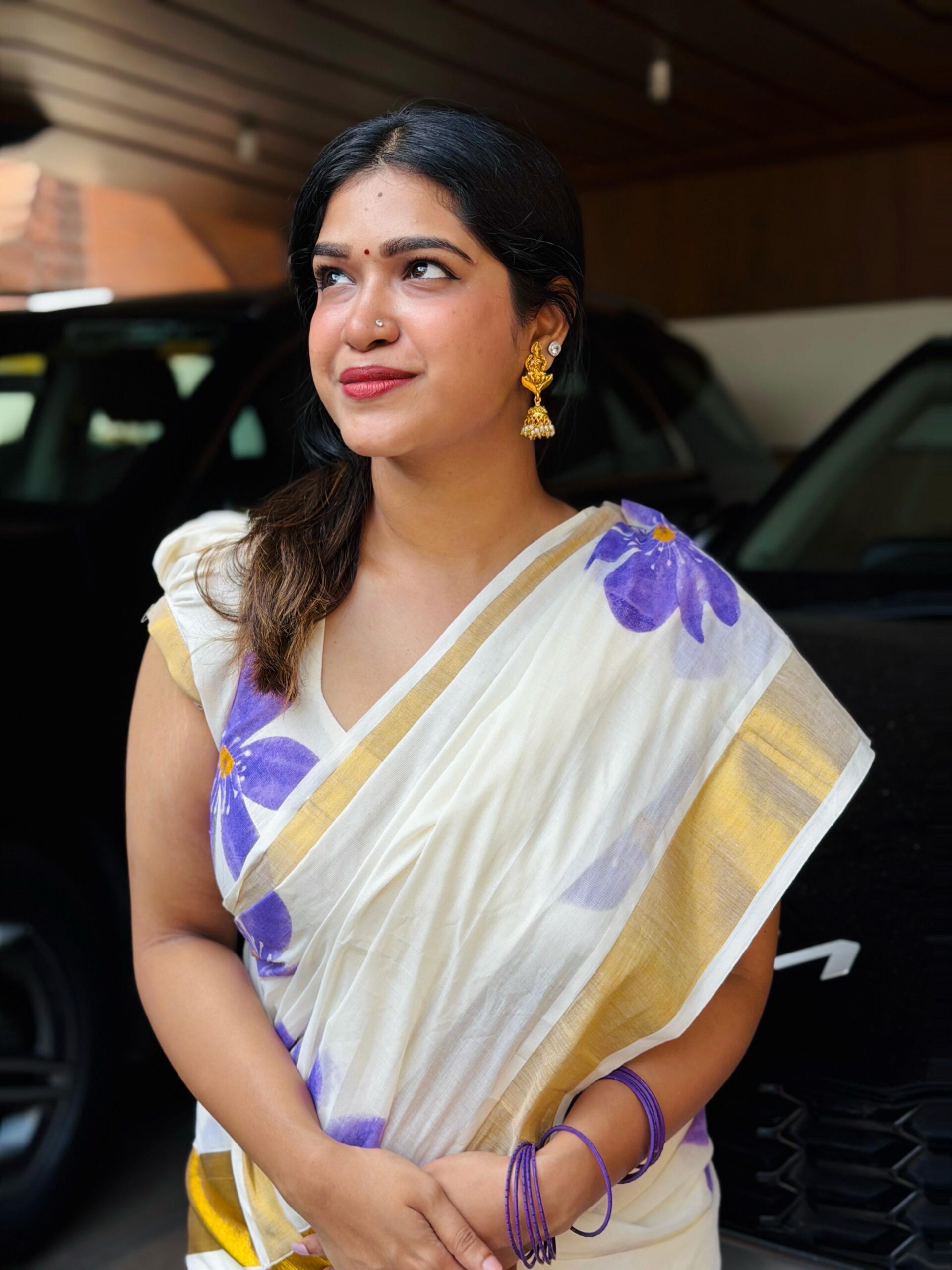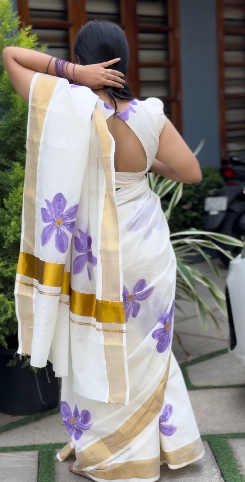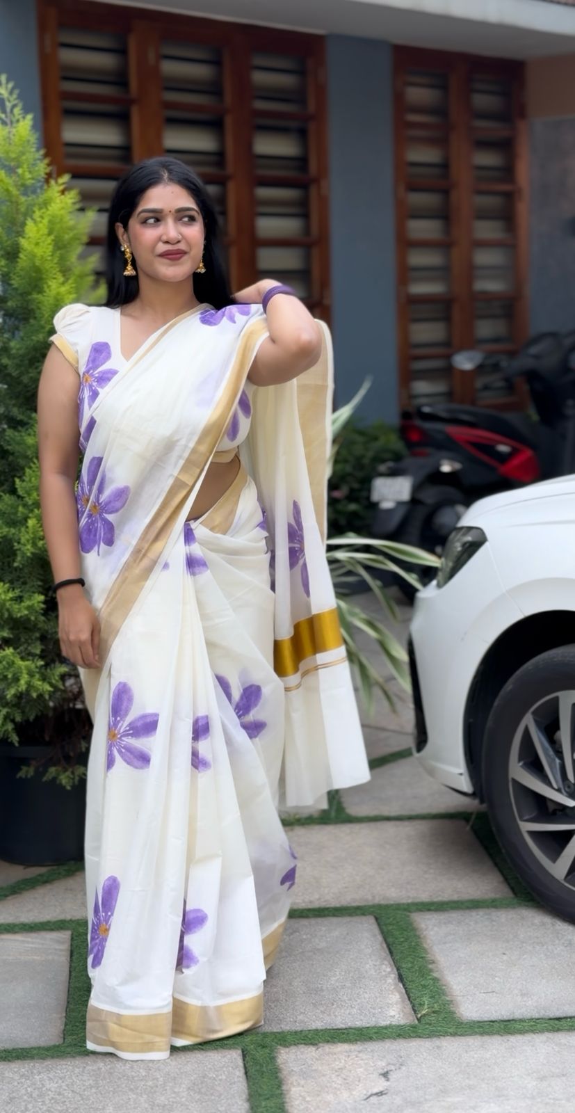 Neelakurnjij – Floral Printed Cotton Saree